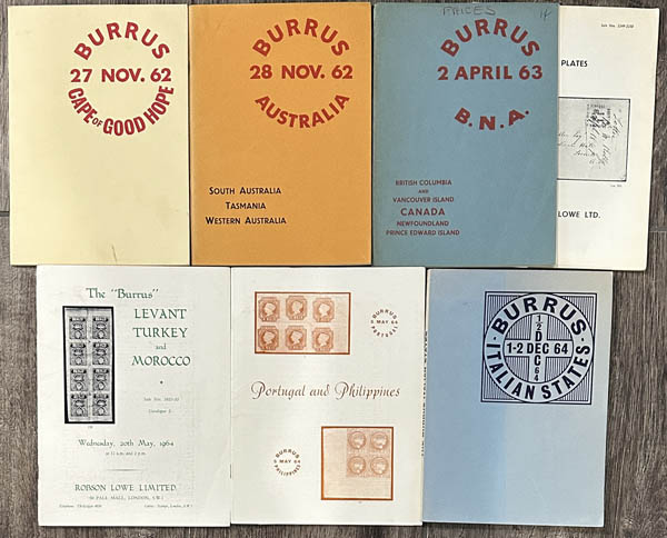 ![]() Robson Lowe Ltd., Burrus Collections 1962-64, including Cape of Good Hope, Australia, B.N.A. plus photo plates, Italian States, Portugal and Philippines, and Levant, Turkey and Morocco all with prices realized and in excellent condition. Estimate $100 - 150. View details and enlarged photo | Unsold |
