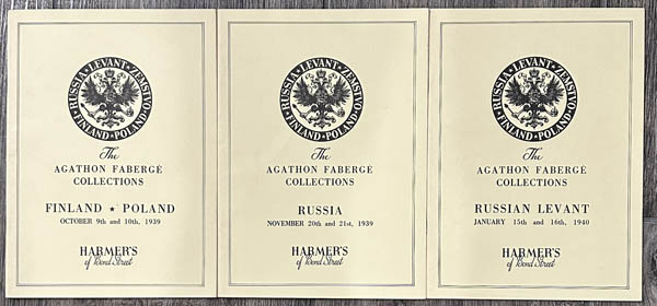 ![]() H.R. Harmer, The Agathon Faberge Collections, 1939-40, soft bound including Finland, Poland, Russia and Russian Levant with prices realized, Rarely offered catalogues of a famous sale. Estimate $40 - 60 In philatelic terms he is one of the most famous Russian philatelists, probably better known as the son of the famous jeweler Peter Karl Gustavovich Fabergé-creator of Fabergé eggs. View details and enlarged photo | Unsold |