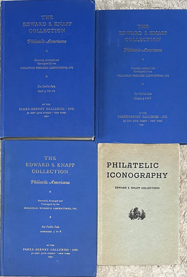 ![]() Parke-Bernet Galleries Inc., The Edward S. Knapp Collection, 1941-42, part 1, 2 and 3 all hardbound with prices realized and the separate book of images entitled Philateic Iconography, Extremely Fine. Estimate $100 - 150. View details and enlarged photo | Unsold |