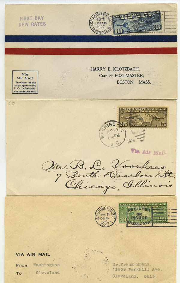 ![]() Airmail, 1926-44, a selection of 20 different FDC's (Scott C7-C12, C16-C22, C25-C31), a nice run, nearly complete for the period less C13-C15 and C23-C24; most are uncacheted with neatly typewritten addresses. A clean and attractive lot, mostly Very Fine. Scott $1,216. Estimate $300 - 400. View details and enlarged photo | Unsold |