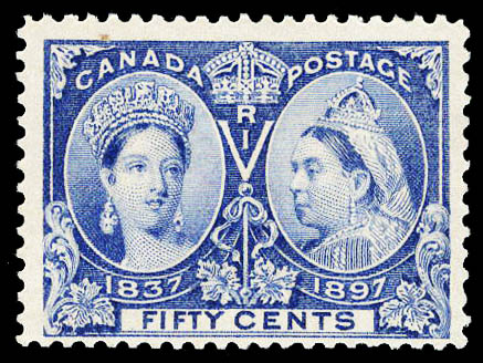 ![]() ![]() Canada, 1897, Queen Victoria Jubilee, 50¢ ultramarine (Scott 60), rich color, o.g., never hinged, Fine to Very Fine. Scott $775. Estimate $100 - 150. Ver detalles y foto agrandada | Adjudicación $90 |