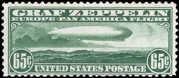 Airmail, 1930, 65¢ Graf Zeppelin (Scott C13), o.g., hinged; reperforated at bottom, otherwise Fine. Scott $180.