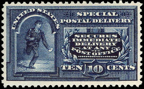 Special Delivery, 1895, 10¢ blue (Scott E5), o.g., lightly hinged, Very Fine to Extremely Fine. Scott $210.