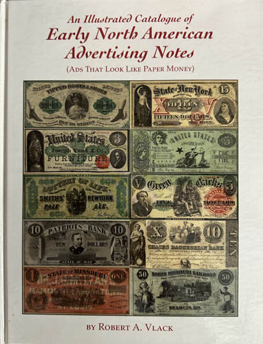 Vlack, Robert A., An Illustrated Catalogue of Early North American Advertising Notes, hardbound; signed by the author and numbered #222; 360 pages with black and white illustrations.