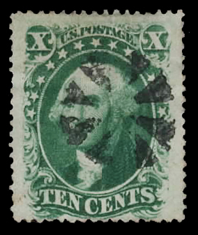 1859, 10¢ green, type V (Scott 35), a handsome example, neat rosette cancel, Very Fine.