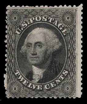 1857, 12¢ black, plate I (Scott 36), deep rich color, o.g., Fine.
