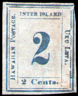 Lot 1250 o Hawaii, 1859, Numeral, 2¢ light blue on bluish white (Scott 13), position 3-A-III, full margins except just touching at top right corner, lightly canceled; a small expert repair, attractive Fine appearance, with 2022 P.S.A.G. certificate. Scott $5,000. Estimate $1,000 - 1,500. |