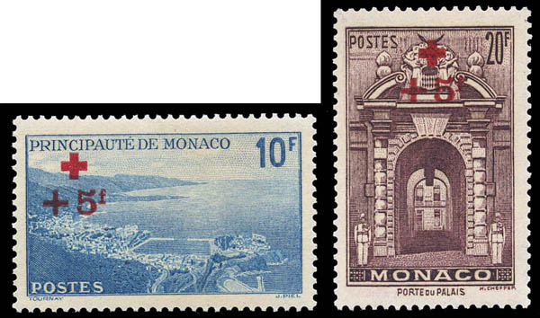 Monaco, 1940, Views issues surcharged complete (Scott B36-B50), o.g., never hinged, Fine to Very Fine. Scott $240.