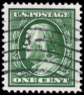 1908, 1¢ Franklin, green, D.L. watermark (Scott 331), a neat jumbo gem, black wavy line machine cancel, Extremely Fine to Superb, ex-Kirke, with 2005 P.S.E. certificate graded XF-SUP 95J. SMQ $85.