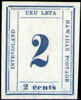 Hawaii, 1865, Numeral, 2¢ dark blue (Scott 26), position 10-A-IV, 4 large beautifully balanced margins, fresh, a very pretty stamp, unused without gum, Very Fine. Scott $350.