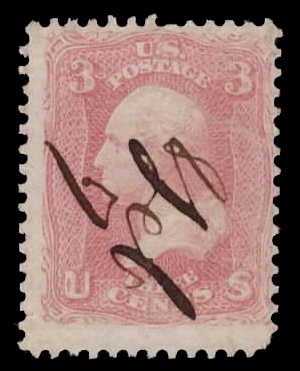 1861, 3¢ rose pink (Scott 64b), fresh, pen cancel, Fine.