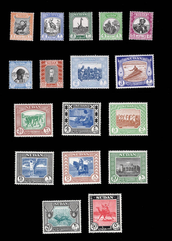 Lot 14![]() /![]() Sudan, 1898-1951, an accumulation of singles and sets, includes Scott #9-16 (#14 & 15 are LH), #24-#28 (not a set and all are LH), #29-35, #36-50a (#40, 48 H and some have toned gum), #60, #61-62 (the latter is H), 79--94 (all LH); #98-114, #115-117 (these are the not valid for postage 1953), #J5-7 (not a set LH), #J9--11 (LH), #J12-15 (used), #O46 (H without gum); all imaged here; a great little offering! Fine to Very Fine. Shipping weight 1 lb / 0.45 kilos. Scott $575. Estimate $60 - 80. |