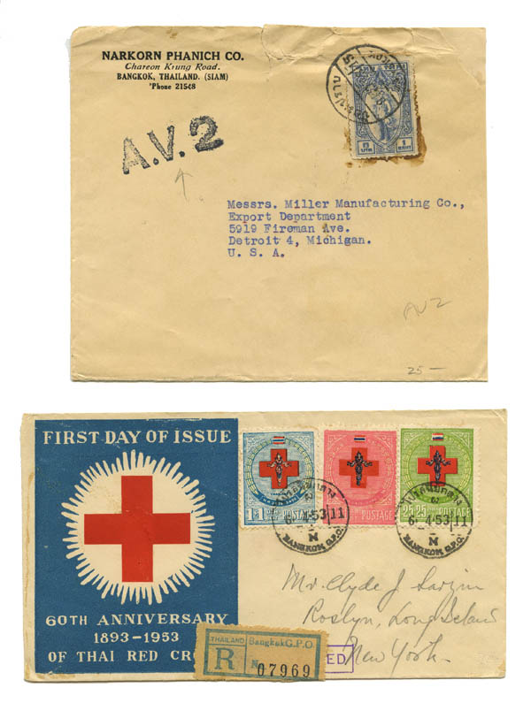 Thailand, 1907-1953, a selection of 10 better covers to the U.S.A., scarce and attractive items with a variety of frankings, some with enclosures, generally Fine to Very Fine.