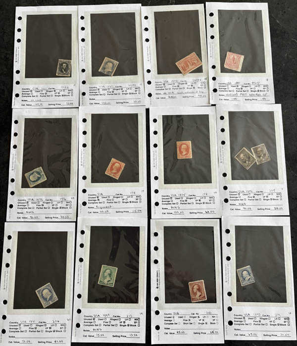 Lot 161![]() /![]() 1873-2009, a massive dealer stock of mint stamps (2021 Scott 156//893), featuring hundreds of stamps housed in 10 small three-ring binders all on stock sheets cataloged, noting condition and catalog value as well as a suggested selling price; some duplication but many of the Scott numbers are represented here with higher catalog values; a few of the stamps are regummed but are noted on the stock sheet and a few are MNG but have not been counted in the catalog value; a few small faults but mainly sound; modern lots as well many of which should be counted as postage but we have used the catalog value; this lot is ready for the dealer to take on the road to shows or for the collector to fill a ton of spaces! We have imaged a good portion of this lot to give a flavor, overall quality is Fine to Very Fine. 2021 Scott approximately $24,400+. Estimate $3,500 - 5,000. |