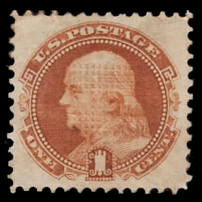 1869, 1¢ buff (Scott 112), well centered, large part o.g. with some gum soaks in the grill; tiny trivial natural paper inclusion, almost Very Fine.