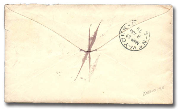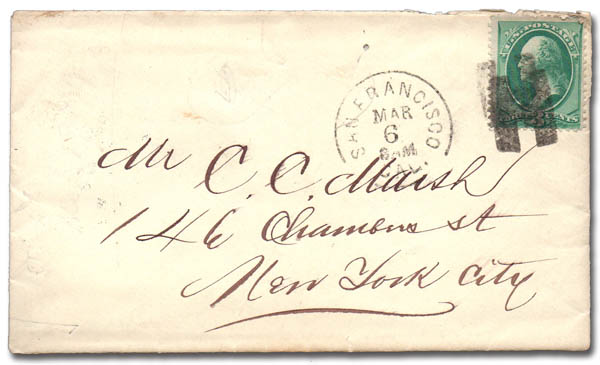 Letter "H" (San Francisco), double strike ties 3¢ green on cover to New York City, interesting contents, Fine to Very Fine.