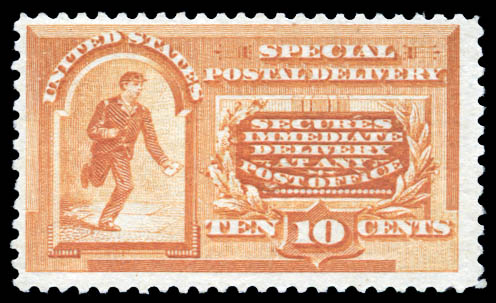 Special Delivery, 1893, 10¢ orange (Scott E3), bright fresh color, o.g., never hinged, Fine to Very Fine. Scott $650.