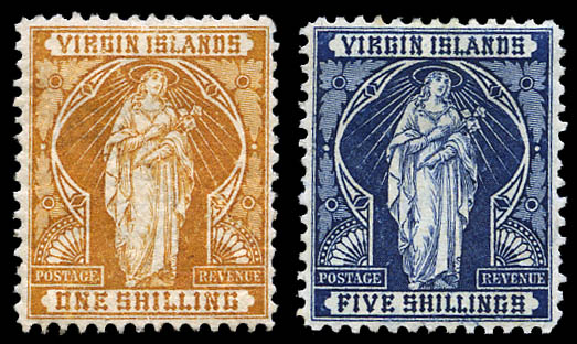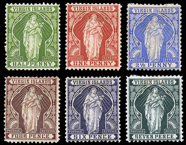 British Virgin Islands, 1899, St. Ursula, ½d to 5s complete (SG 43/50. Scott 21-28), set of 8, o.g., hinged or hinge remnant, Fine to Very Fine. SG £150 ($190). Scott $161.