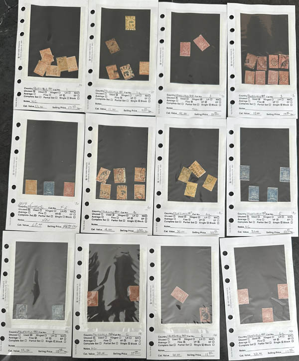 Lot 180 /oVenezuela, 1859-2017, a dealer's stock of mint and used, singles and sets which includes regular issues, semi postals and airmails, all neatly housed and identified in 33 small three-ring binders; notes of condition are indicated on some but we have not examined every item, occasional faults as would be expected, otherwise generally Fine or Fine to Very Fine. We have imaged the binders containing the early issues, as well as early semi posts and airmails to give an overall flavor of the lot. A wonderful opportunity to acquire many items from Venezuela! 2020 Scott approximately $30,000. Estimate $1,500 - 2,000. |