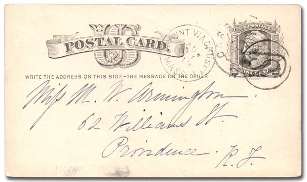 US (Mount Wachusett, Mass.), clear strike on a 1¢ postcard to Providence, RI, Fine to Very Fine.
