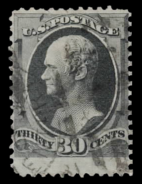 1870, 30¢ black, H. grill (Scott 143), light duplex cancel; reperfed at right, otherwise Fine.