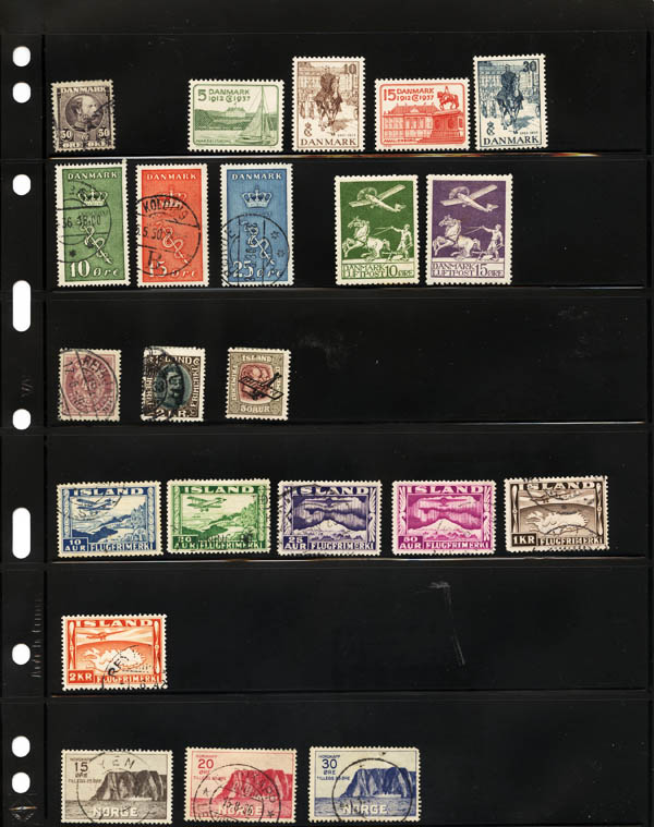 Lot 194 /oScandinavia, 1856-1940, mostly used collection. Including collections of Iceland (catalog value $881) and Norway ($1210), both hinged on Scott International album pages. Also a selection of better sets and singles, including: Denmark # 68 used ($120), 258-261 mint OG ($50), B3-5 used ($80.25), C1-2 mint OG ($78.50); Iceland # 18 used ($57.50), 186 used ($80), C2 mint OG ($75), C15-20 used ($97); Norway B1-3 used ($196). Nice condition overall with neat cancels, generally Fine to Very Fine. Scott $2,925. Estimate $400 - 600. |
