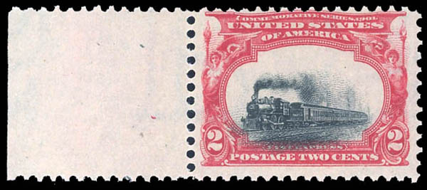 1901, 2¢ Pan-American, "sinking train" variety (Scott 295 var.), showing a strong downward shift of the central vignette, o.g., never hinged, Fine.