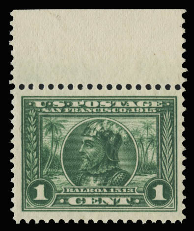 1913, 1¢ Panama-Pacific, perf 12 (Scott 397), a beautiful example, well centered within large margins, o.g., never hinged, Very Fine to Extremely Fine.