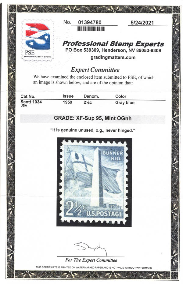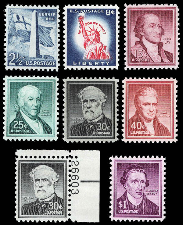 Lot 228![]() ![]() 1959, 2½¢ Bunker Hill, plus 7 other premium items from the Liberty Series (Scott 1034//1052a), including Sc# 1042, 1046a, 1048, 1049, 1049a, 1050a, 1052a; a great little lot of exceptional quality stamps, o.g., never hinged, Extremely Fine to Superb, each with 2021 P.S.E. certificate graded XF-SUP 95. SMQ $315. Estimate $150 - 200. |
