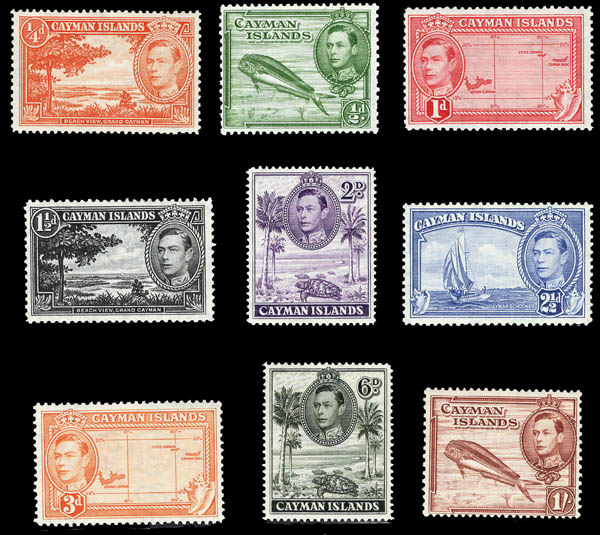Cayman Islands, 1938-43, King George VI definitives complete (Scott 100-111), set of 12, o.g., never hinged, Fine to Very Fine. Scott $125. SG 115/126a; £100 ($120).