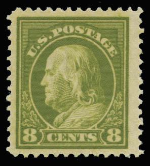 1912, 8¢ pale olive green (Scott 414), nicely centered within unusually large margins, o.g., never hinged, Very Fine.