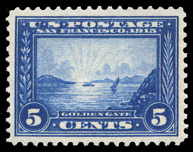 1913, 5¢ Panama-Pacific, perf. 12 (Scott 399), o.g., never hinged, Very Fine to Extremely Fine, with 2016 P.S.E. certificate graded VF-XF 85. Scott $160. SMQ $215.