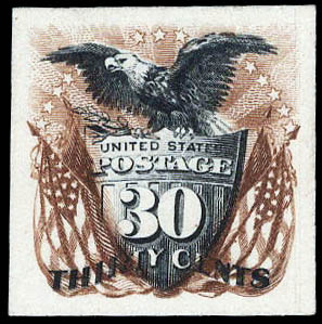 1869 (1875 Re-issue), 30¢ brown & black, "Atlanta" trial color plate proof on card (Scott 131TC4g), Very Fine to Extremely Fine. Scott $375.