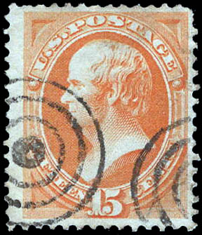 1873, 15¢ Webster, yellow orange, C.B.N.C. printing (Scott 163), with secret mark, Fine. Scott $160.