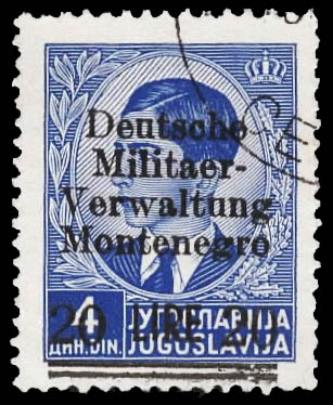 German WWII Occupation of Montenegro, 1943, 20L on 4d ultramarine (Scott 3N9), neat corner c.d.s., Very Fine. Scott $200. Michel 9; €500 ($540).