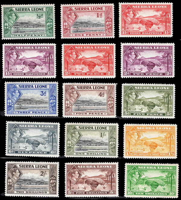 Sierra Leone, 1938-44, King George VI definitives complete (Scott 173-185), o.g., never hinged, Fine to Very Fine. Scott $150. SG 188/200; £140 ($170).