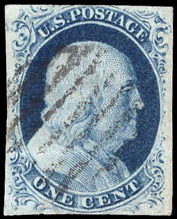 1851, 1¢ Franklin, blue, type II (Scott 7), large margins almost all around; horizontal crease, otherwise Fine. Scott $140.