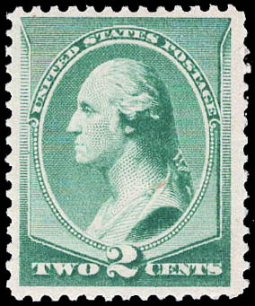 1887, 2¢ Washington, green (Scott 213), o.g., never hinged, almost Very Fine. Scott $120.