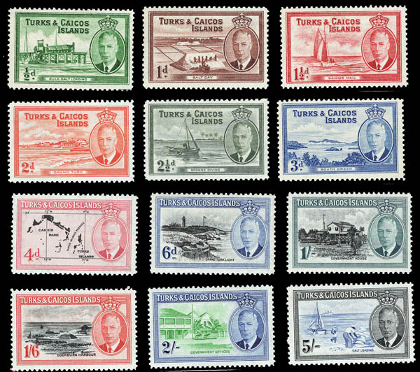 Turks & Caicos, 1950, King George VI Pictorials complete (Scott 105-117), o.g., never hinged, Fine to Very Fine. Scott $97. SG 221/233; £85 ($100).