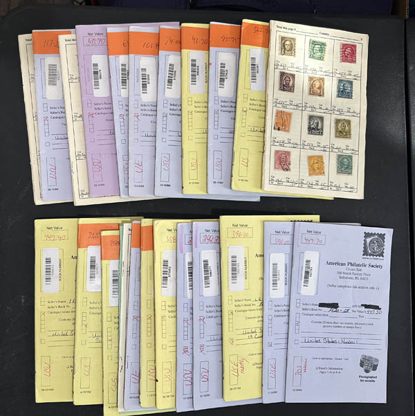 Lot 294![]() / /o1850's onward, a massive grouping of retired APS circuit books, approximately 100 books mostly full (75%) with mint and used stamps from classics to modern with items cataloging 25¢ up to $150; roughly 25 of the books are filled with fancy cancels with beautiful strikes; there is a smattering of Hawaii and some airmail too; owner retail is around $10,000 and there is a ton of value here with some interesting items to be had! Estimate $1,000 - 1,500. |