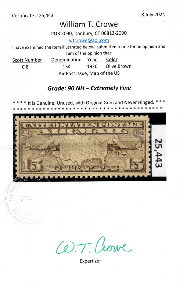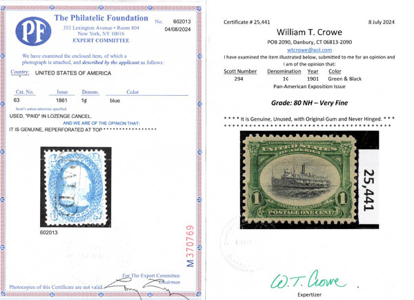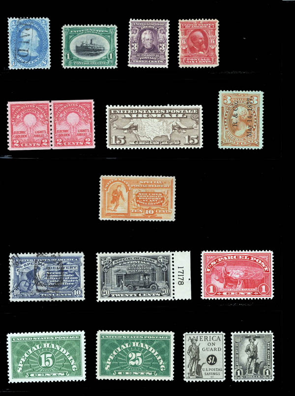 Lot 296![]() / /o1861-1919, an eclectic mint and used balance lot, includes Scott #63 used, #294 (graded 80) n.h., #302, #305, #656 pr (n.h.), #C8 (XF-90) n.h., #E3 (no gum), #E10a used, #E14 (n.h.), #Q1, #QE2a, #QE4, #PS14 (n.h.), #S4 (n.h.) and #RB13 used, RW43, RW52 (n.h.), RW60 (n.h.), RW64 (n.h.), RW68 (n.h.), and RW77 (n.h.); this is a great lot of high quality but less expensive items selected for their centering; all imaged here along with the few certificates, Very Fine to Extremely Fine. Scott $772. Estimate $200 - 300. |