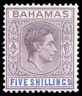 Bahamas, 1938, King George VI, 1s lilac & blue, thick chalky paper (Scott 112b), o.g., very lightly hinged, Fine to Very Fine. Scott $150. SG 156; £170 ($230).