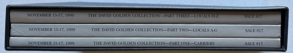 Siegel Auctions, The David Golden Collection of U.S. Carriers and Locals, Parts 1-3 Complete, 1999, with slipcase.