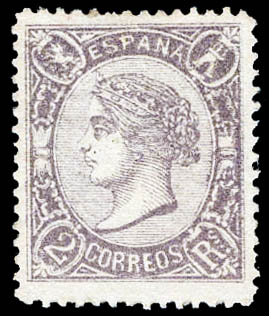 Spain, 1865, Isabella II, 2r violet (Scott 79. Edifil 79), o.g., hinged, Fine to Very Fine. Scott $1,900.