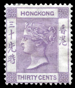 Hong Kong, 1871, Queen Victoria, 30¢ mauve (Scott 20), Crown CC watermark, bright and fresh, disturbed o.g., Fine. Scott $250. SG 16; £275 ($330). Yang 16.