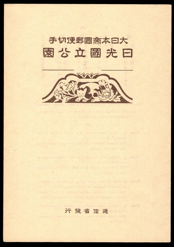 Japan, 1938, Nikko National Park, souvenir sheet of 4 (J.S.C.A. P9. Scott 283a), with folder, o.g., never hinged, Very Fine. J.S.C.A. 15,000 yen ($110). Scott $140.