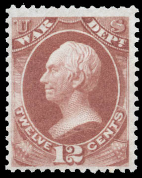 War Dept., 1879, 12¢ rose red (Scott O119), fresh color, o.g., never hinged (gum skip), Fine to Very Fine. Scott $110.