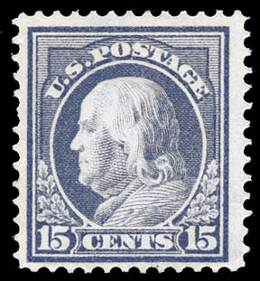 1912, 15¢ Franklin, gray, S.L. watermark, perf. 12 (Scott 418), o.g., never hinged, Fine to Very Fine. Scott $190.