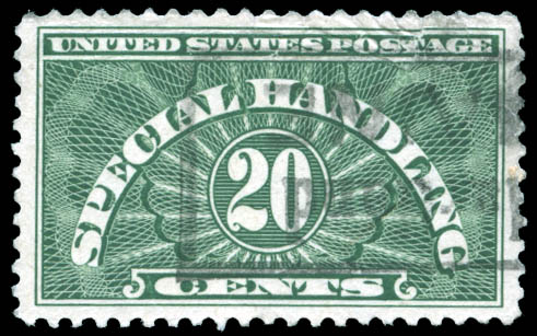 Special Handling, 1955, 20¢ light green, dry printing (Scott QE3a), a lovely well centered example of this scarce printing, lightly canceled, Very Fine.