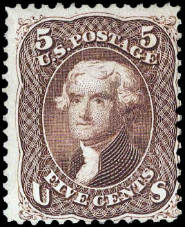 1862, 5¢ Jefferson, red brown (Scott 75), unused without gum, nearly Fine. Scott $2,250.